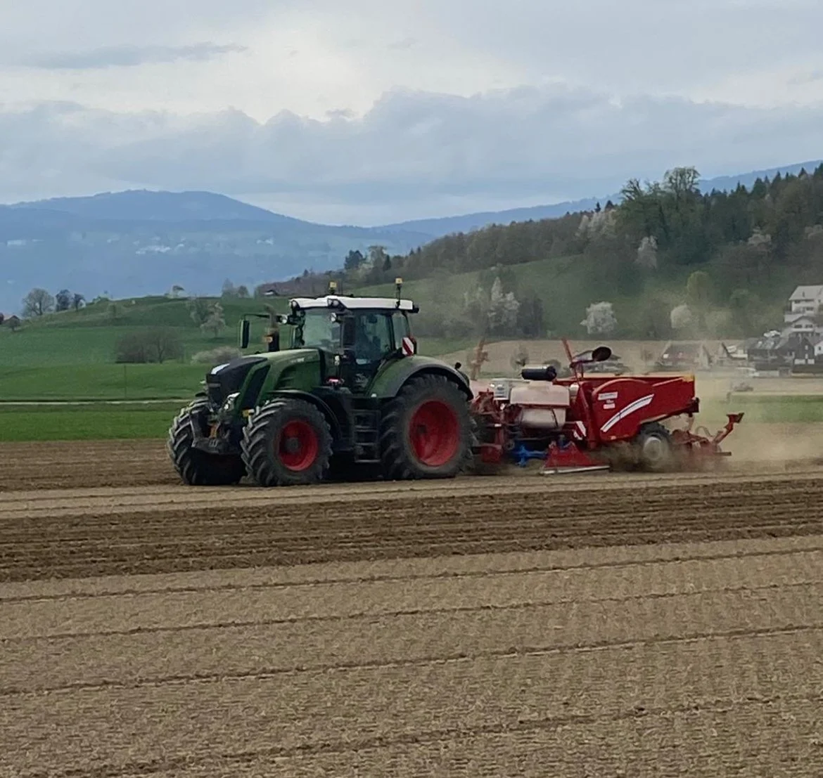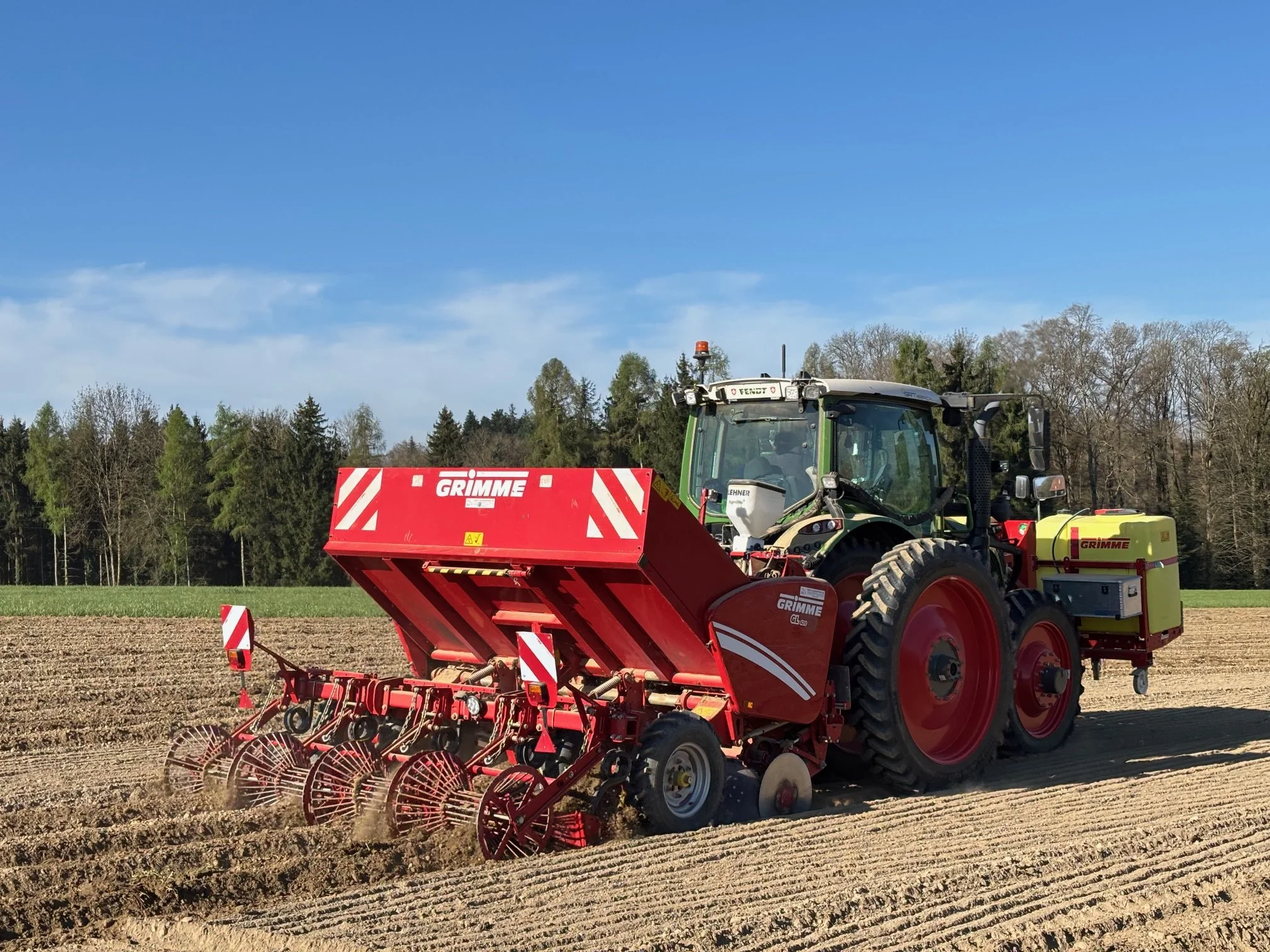 2014- Einstieg in die Pflanztechnik. Anschaffung eines MF 7495 und der all-in-on Setzkombination Grimme Exacta GL 420. Auf Anhieb pflanzten wir 70 ha Kartoffeln.